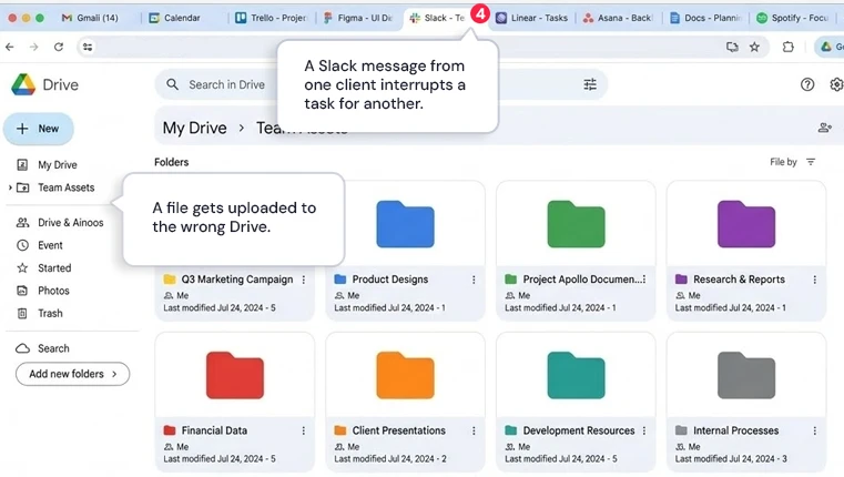 This way, a message from one client does not interrupt focused work for another. You decide when to switch, instead of reacting to every ping.